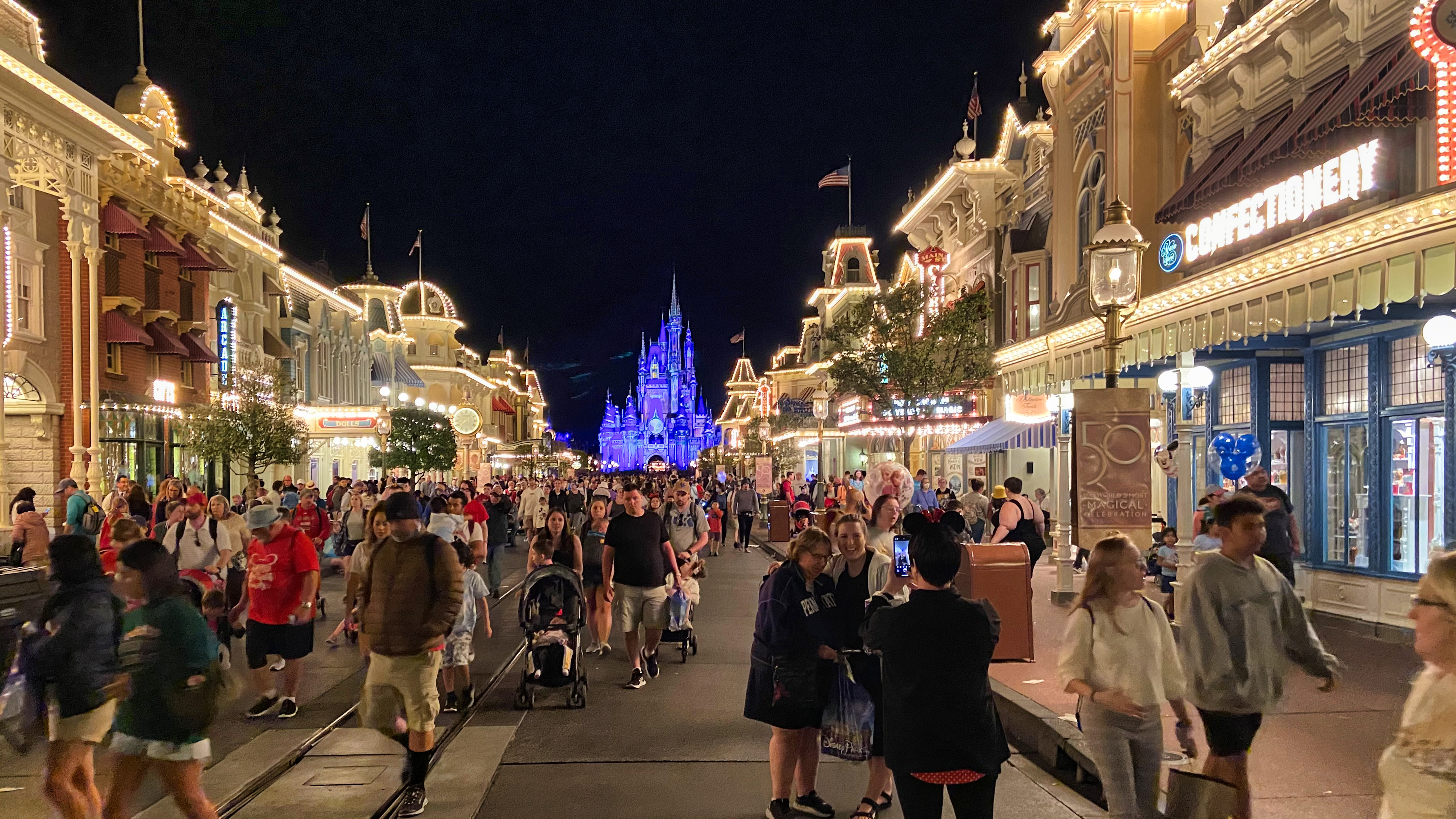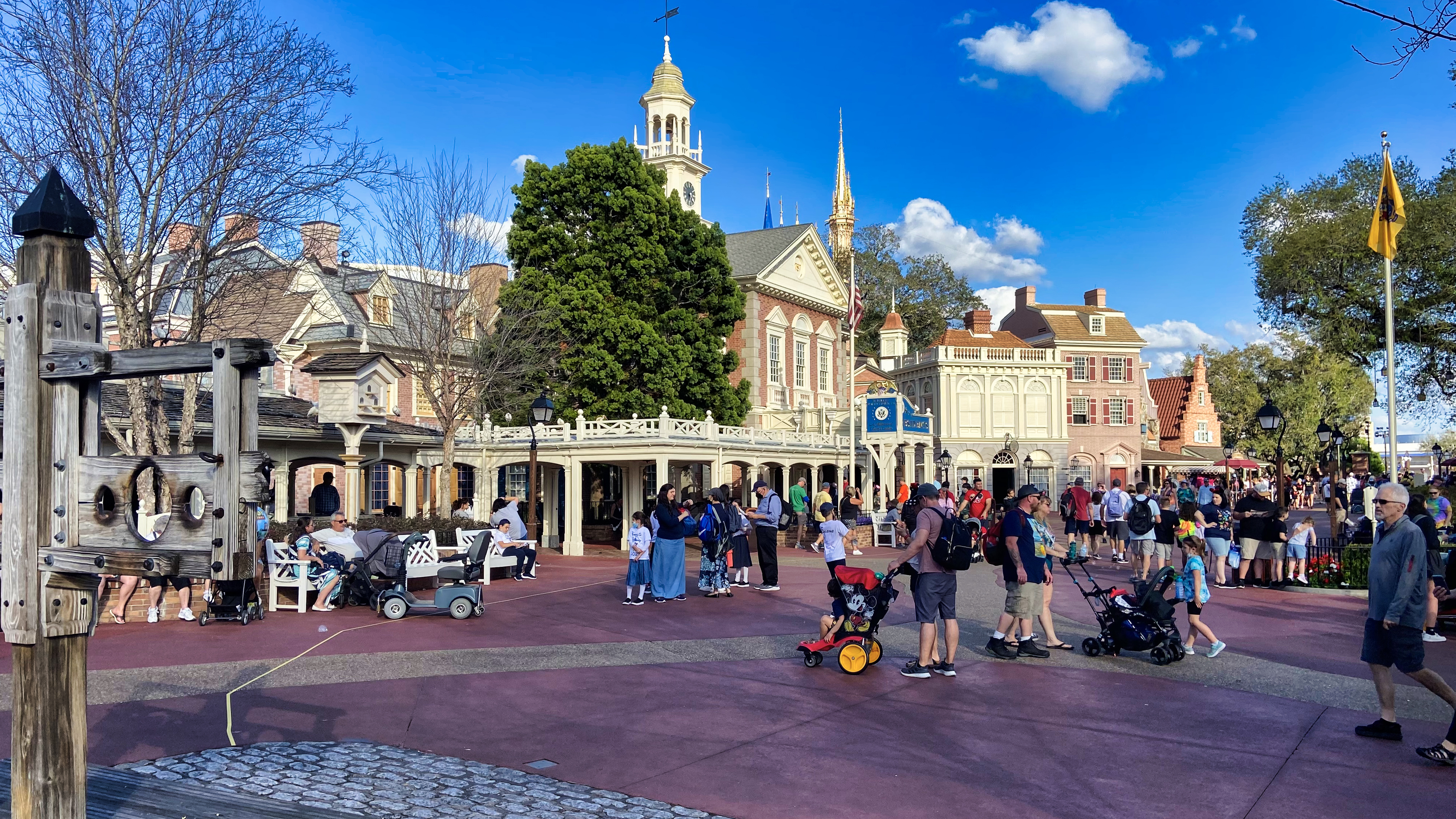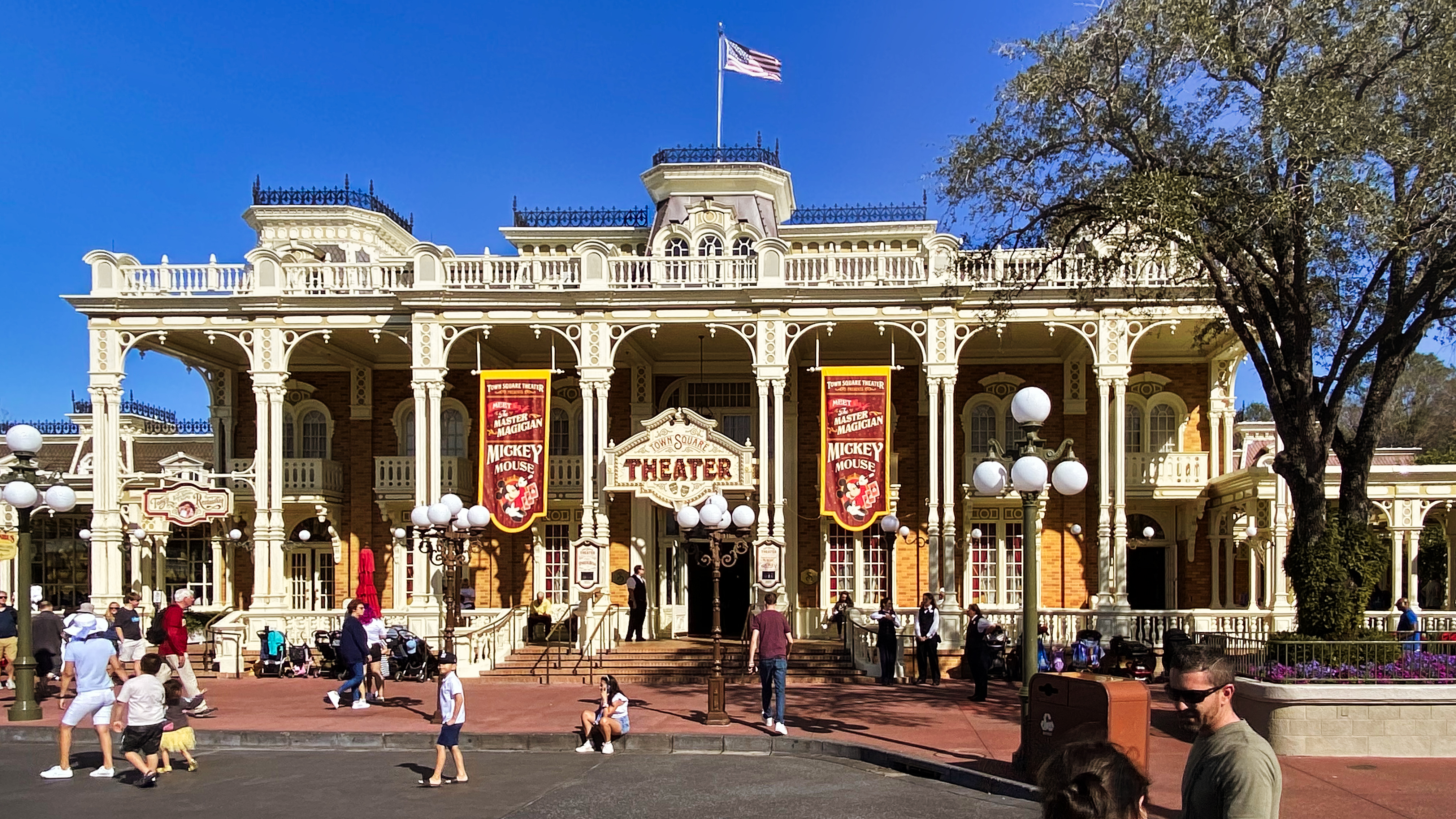 It features stylistic influences from around the country. Taking its inspiration from New England to Missouri, this design is most noticeable in the four corners in the middle of Main Street, where each of the four corner buildings represents a different architectural style. There is no opera house as there is at Disneyland; instead, there is the Town Square Theater. Christopher George Weaver, the “mayor” of Main Street U.S.A. and one of the park's most important figures, greeted guests here for 26 years before he died in 2017