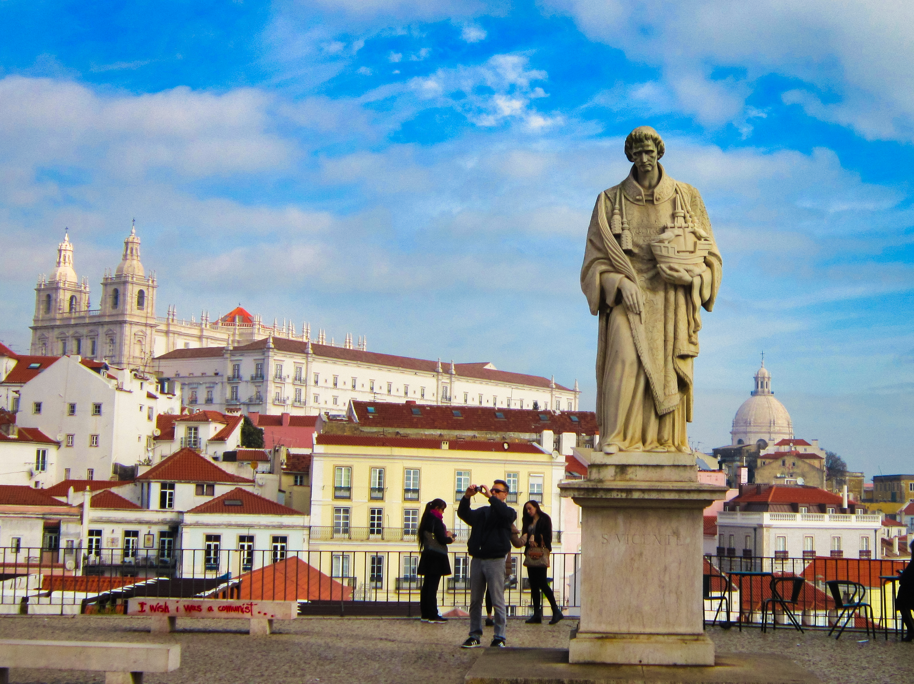 Lisbon has several miradouros or view points that show vistors terrific panoramas of the city and the river Tagus. The one of the most famous is “Miradouro das Portas do Sol”. The image down below was taken from there.