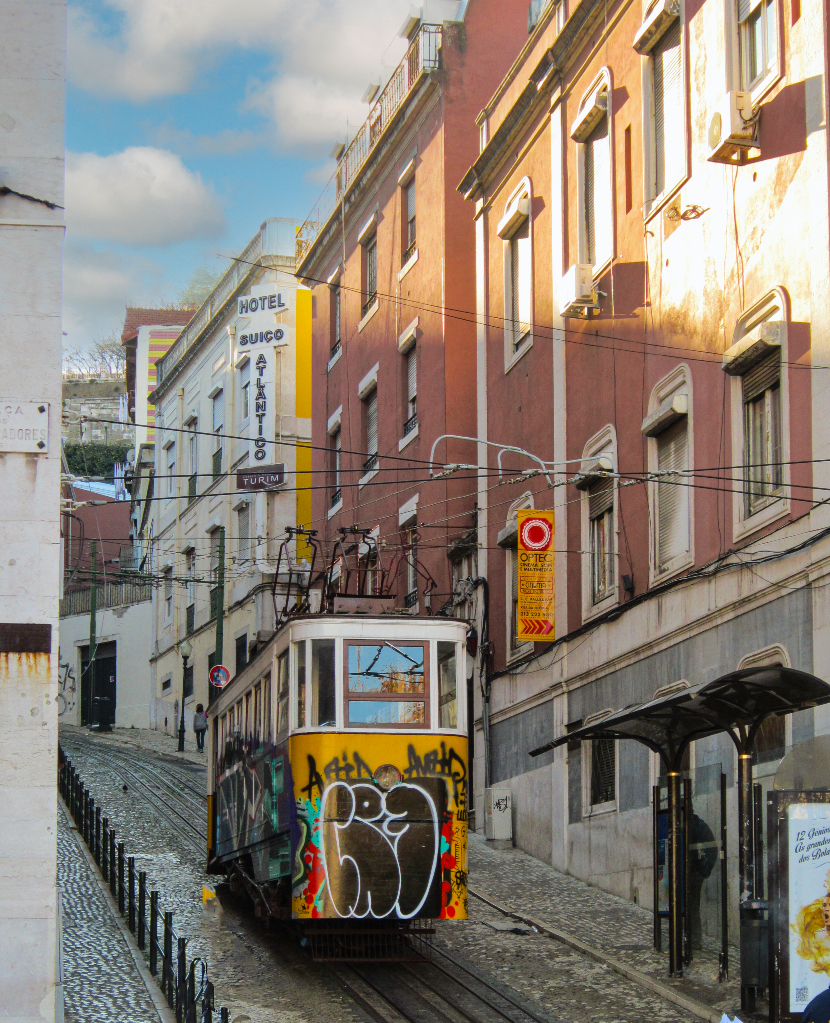 The number 28 tram in Lisbon connects Martim Moniz with Campo Ourique, and passes through the popular tourist districts of Graca, Alfama, Baixa and Estrela. For visitors, this is the classic Lisbon tram journey, riding in a quaint yellow tram as it rattles and screeches through the narrow streets of the city.